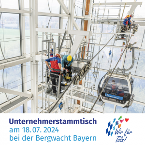 der Unternehmerverein „Wir für Tölz e.V.“ und die Wirtschaftsförderung Bad Tölz laden herzlich zum nächsten Unternehmerstammtisch zur Bergwacht Bayern ein.